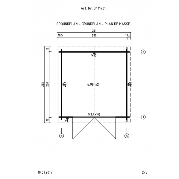Nell’imballo è incluso manuale di istruzioni cartaceo in italiano con immagini esplicative passo-passo, tutta la ferramenta di montaggio, pavimento con fondazioni impregnate in autoclave.