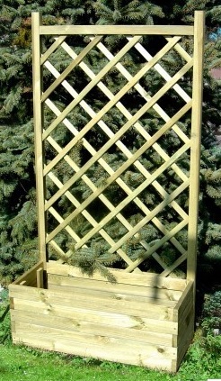 La fioriera Ola è composta da una fioriera unita a un grigliato per piante rampicanti, sormontato da un elegante arco decorativo.